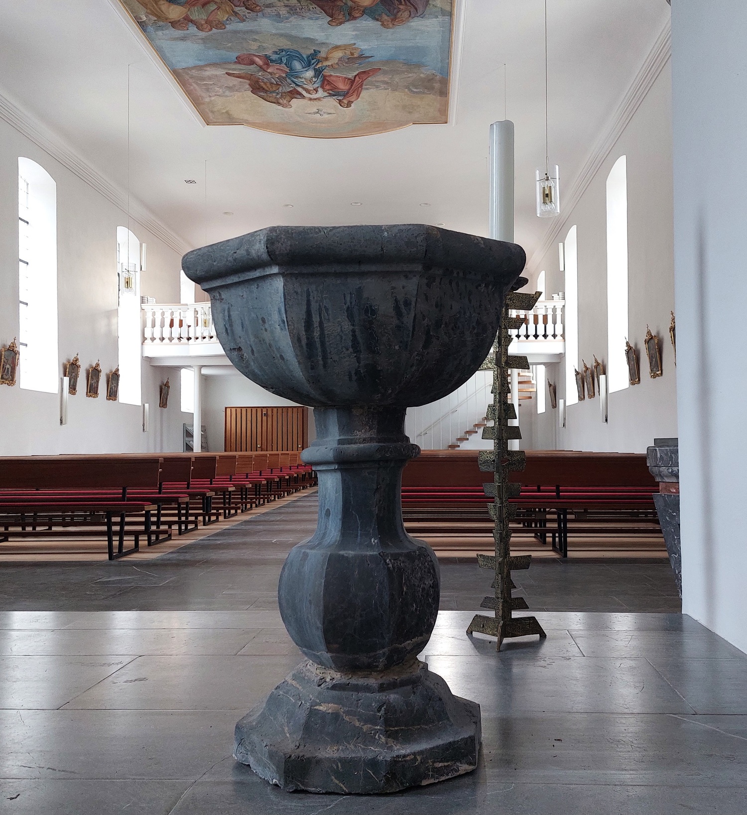 Seit Jänner 2024 hat unsere Pfarrkirche, dank des Einsatzes von Pfarrer Hubert, wieder ein Taufbecken. Das Taufbecken sowie die Osterkerze sind wesentliche Merkmale einer Kirche und unterscheiden diese auch von einer Kapelle. Unser "neues" altes Taufbecken stammt aus dem 17. Jahrhundert und ist eine Dauerleihgabe der Gemeinde Reuthe. Es hat nun seinen Platz im Altarraum unserer Kirche gefunden. Die Pfarrgemeinde freut sich über alle Täuflinge, die zukünftig am Taufbecken das Sakrament der Heiligen Taufe empfangen werden.