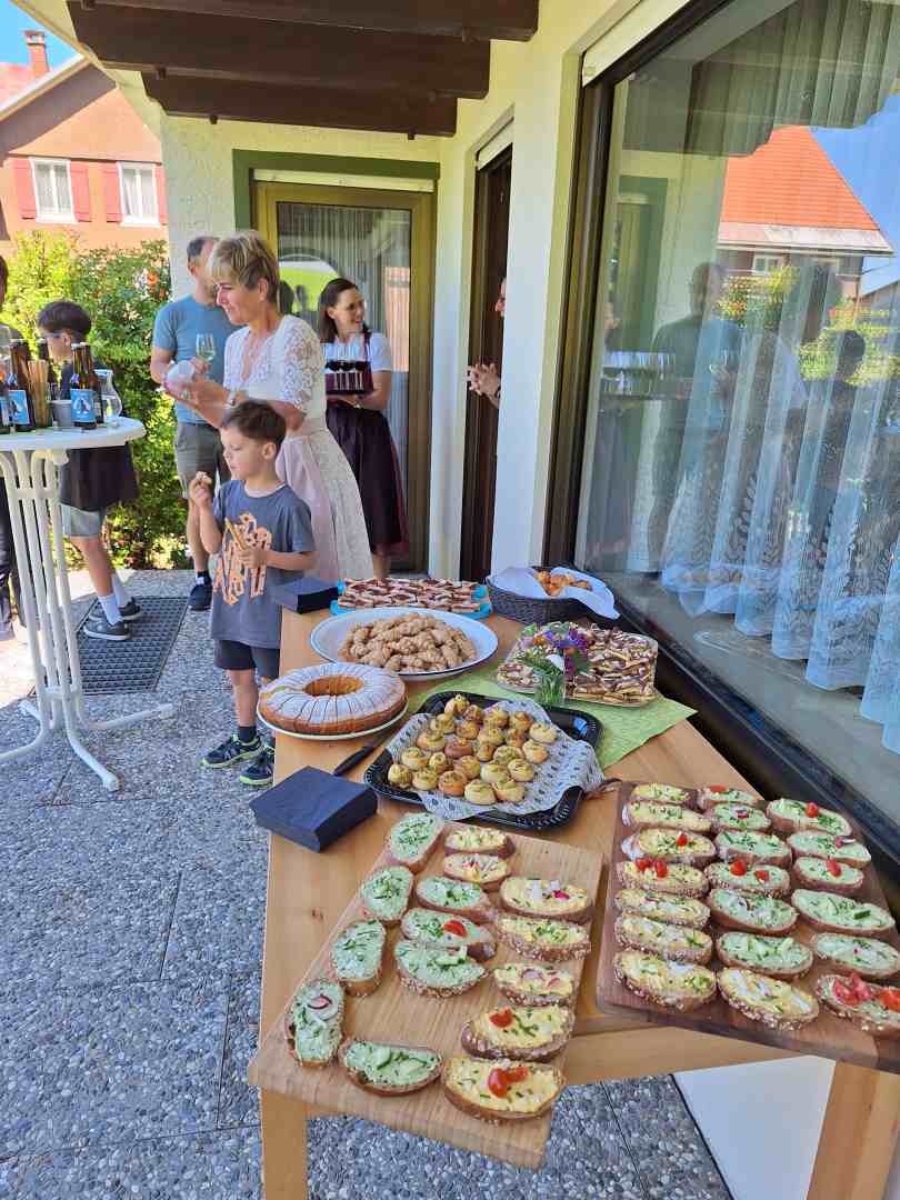 Im Anschluss an die Hl. Messe am Pfingstmontag war die Pfarrgemeinde eingeladen, den renovierten Pfarrhof zu besichtigen. Dieser Möglichkeit sind viele Interessierte gefolgt. Bei Getränken und Snacks konnten im Pfarrgarten gute Gespräche geführt werden.